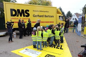 AKTIONSTAG »TOTER WINKEL«. DMS Gerhard Bertram schützt Kinder vor Unfällen mit LKWs