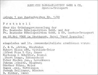 Am 22. Mai 1968 trafen sich drei Dutzend der »jungen Wilden« im Stuttgarter Hotel Graf Zeppelin. Die Möbelspediteure der überwiegend eher jüngeren Generation hatten nichts weniger im Sinn als die Gründung einer neuen Kooperationsgemeinschaft in der Branche. Die Ziele: von gemeinsamer Stärke profitieren, durch Innovationen auf den Zeitgeist eingehen, alte Strukturen in den eigenen Betrieben aufbrechen. Die Gründer der DMS Deutsche Möbelspedition versprachen sich viel vom Aufbruch in die Größe durch Gemeinschaft.
